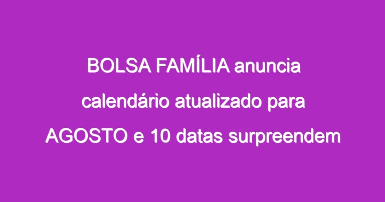 Calendário de agosto do Bolsa Família é atualizado e 10 datas causam surpresa. Confira todos os detalhes!