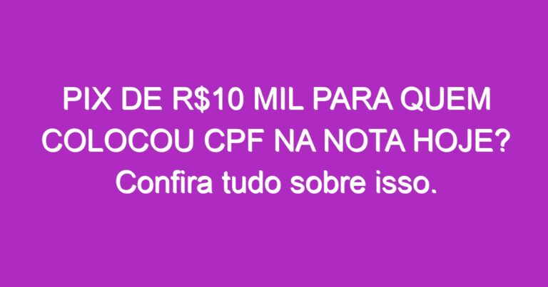 PIX DE R$10 MIL PARA QUEM COLOCOU CPF NA NOTA HOJE? Confira tudo sobre isso.