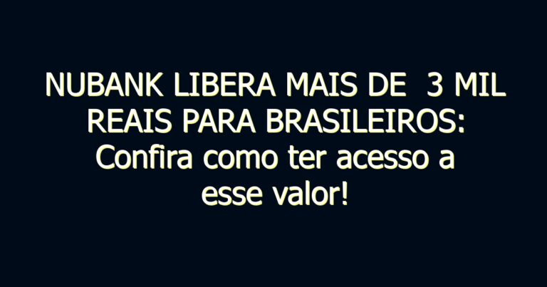 NUBANK LIBERA MAIS DE 3 MIL REAIS PARA BRASILEIROS: Confira como ter acesso a esse valor!