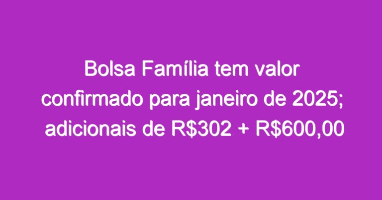 Bolsa Família tem valor confirmado para janeiro de 2025 com adicionais de R$302. Confira os detalhes!