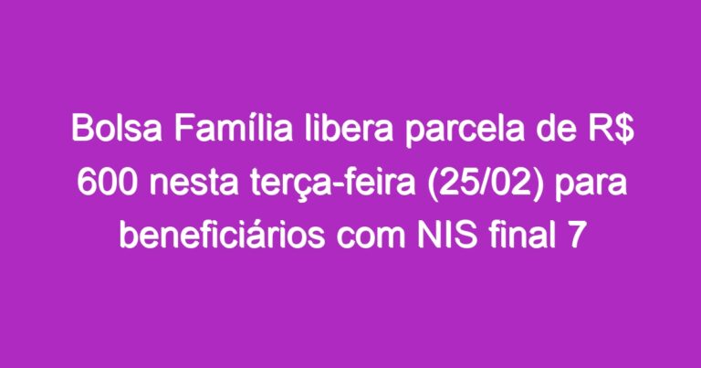 Nesta terça-feira, 25 de fevereiro de 2025, a Caixa Econômica Federal efetua o pagamento do Bolsa Família para quem possui o Número de Inscrição Social (NIS) terminado em 7. O repasse faz parte da parcela referente ao mês de fevereiro…