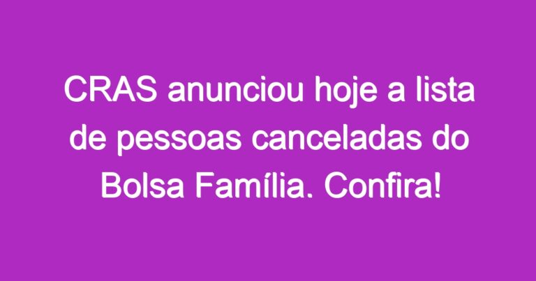 CRAS anunciou hoje a lista de pessoas canceladas do Bolsa Família. Confira!