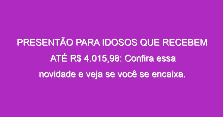 PRESENTÃO PARA IDOSOS QUE RECEBEM ATÉ R$ 4.015,98: Confira essa novidade e veja se você se encaixa.
