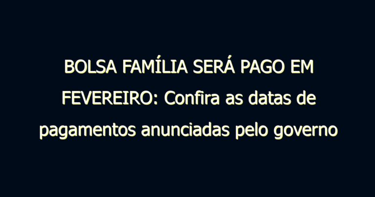 BOLSA FAMÍLIA SERÁ PAGO EM FEVEREIRO: Confira as datas de pagamentos anunciadas pelo governo